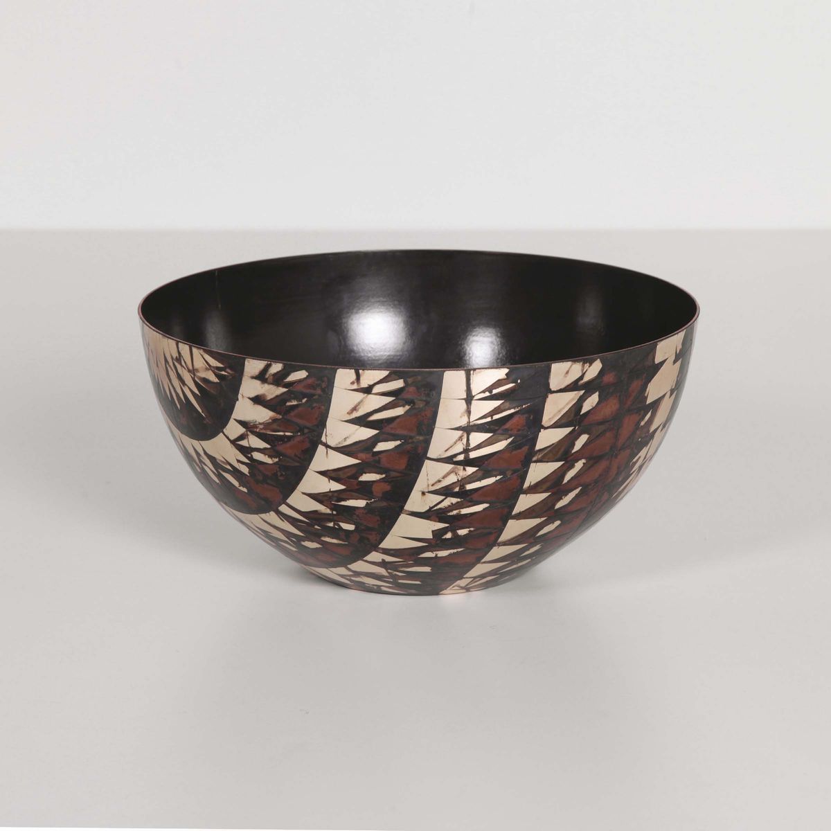 Centrotavola in metallo decorato. Firma incisa. Prod. Burchiellaro, Italia 1970 ca. cm 30x14