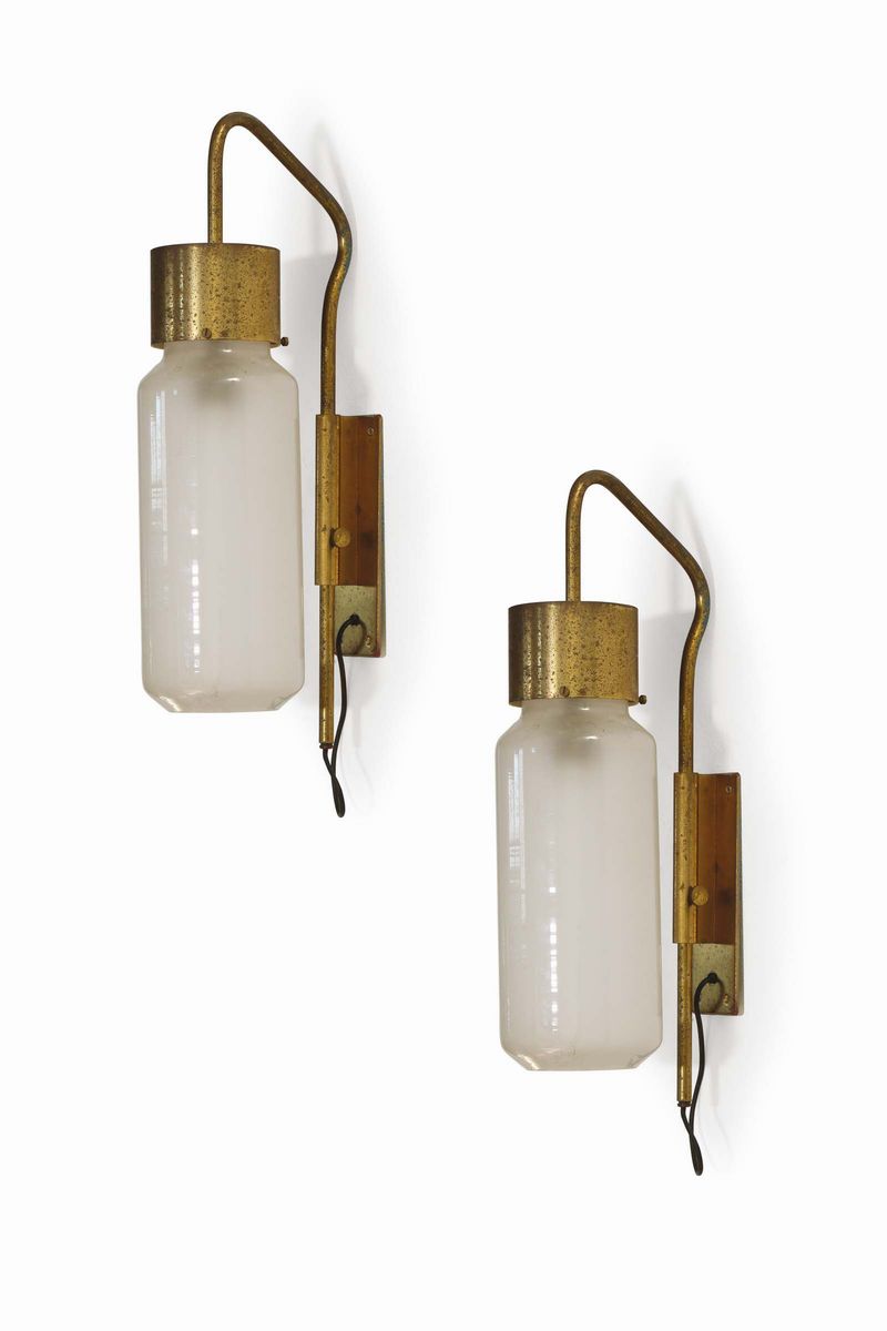 Coppia di appliques LP10 in ottone e vetro smerigliato.Prod. Azucena, Italia, 1958