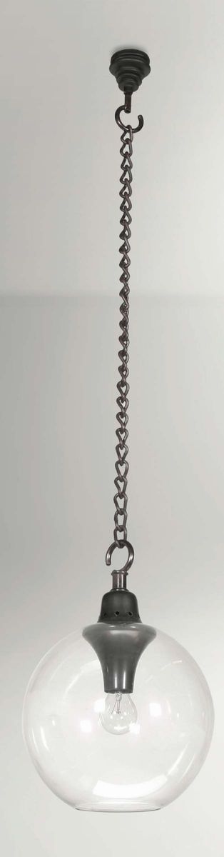Lampada a sospensione LC10 con struttura in alluminio e diffusore in vetro. Prod. Azucena, Italia, 1964 cm 30x135