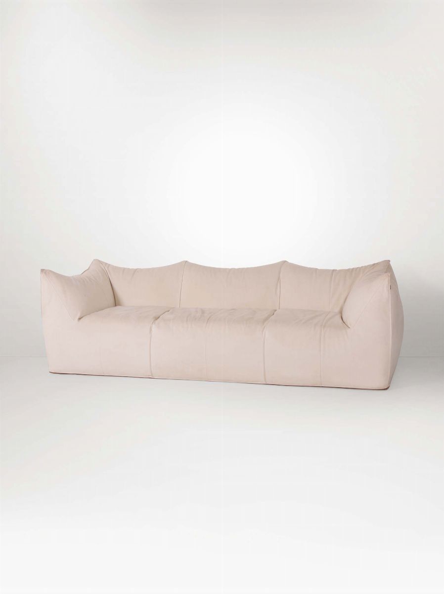Divano a tre posti della serie Le bambole con struttura in metallo e rivestimento in tessuto.