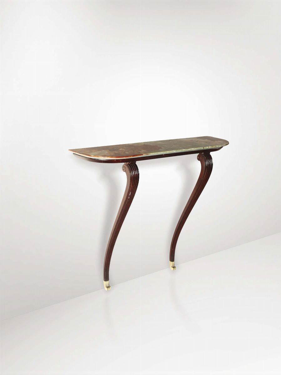 Consolle da muro in legno ebanizzato con piano in marmo Prod. Italia, 1950 ca.