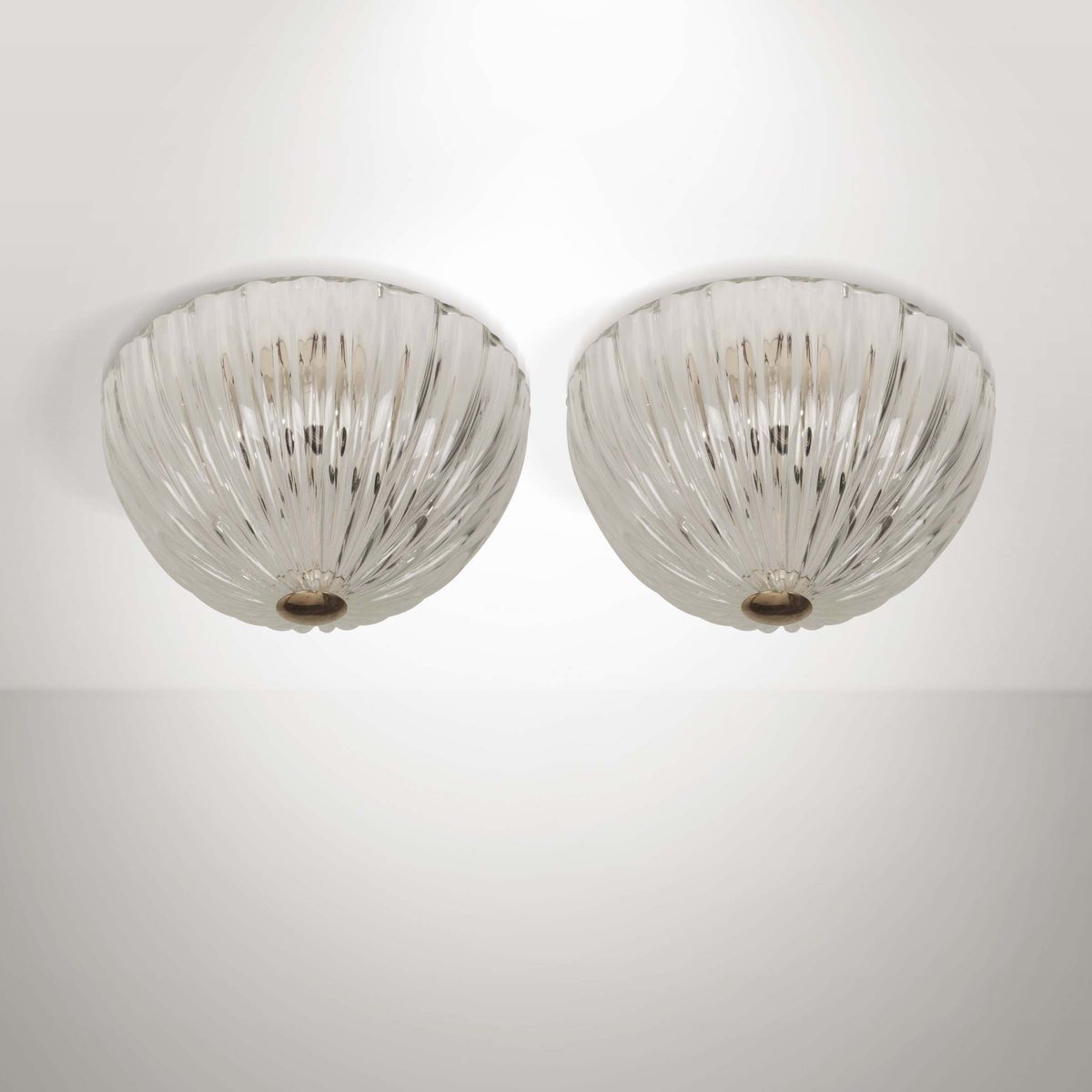 Due plafoniere in vetro di Murano. Prod. Seguso, Italia, 1940 ca. cm 35x20