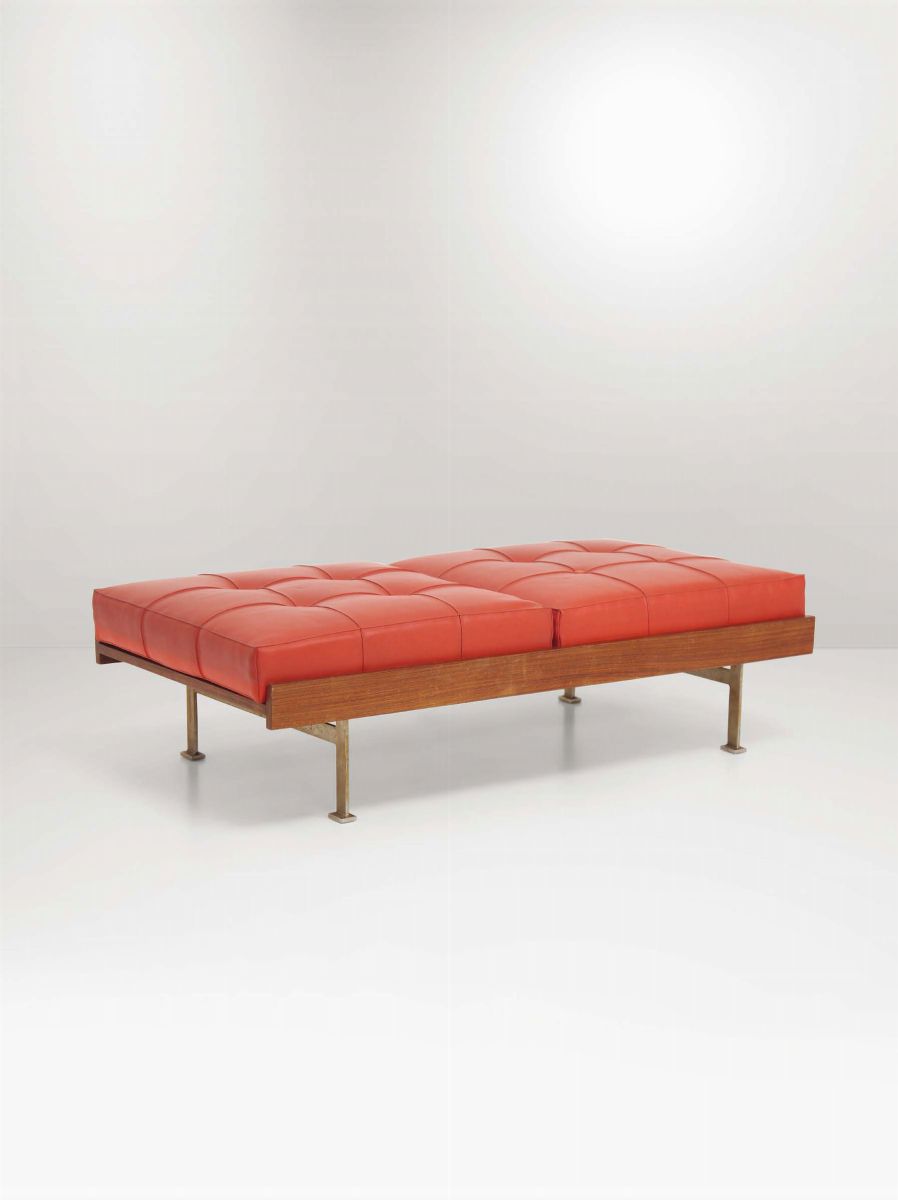 Struttura in legno, sostegni in metallo e seduta in skai.