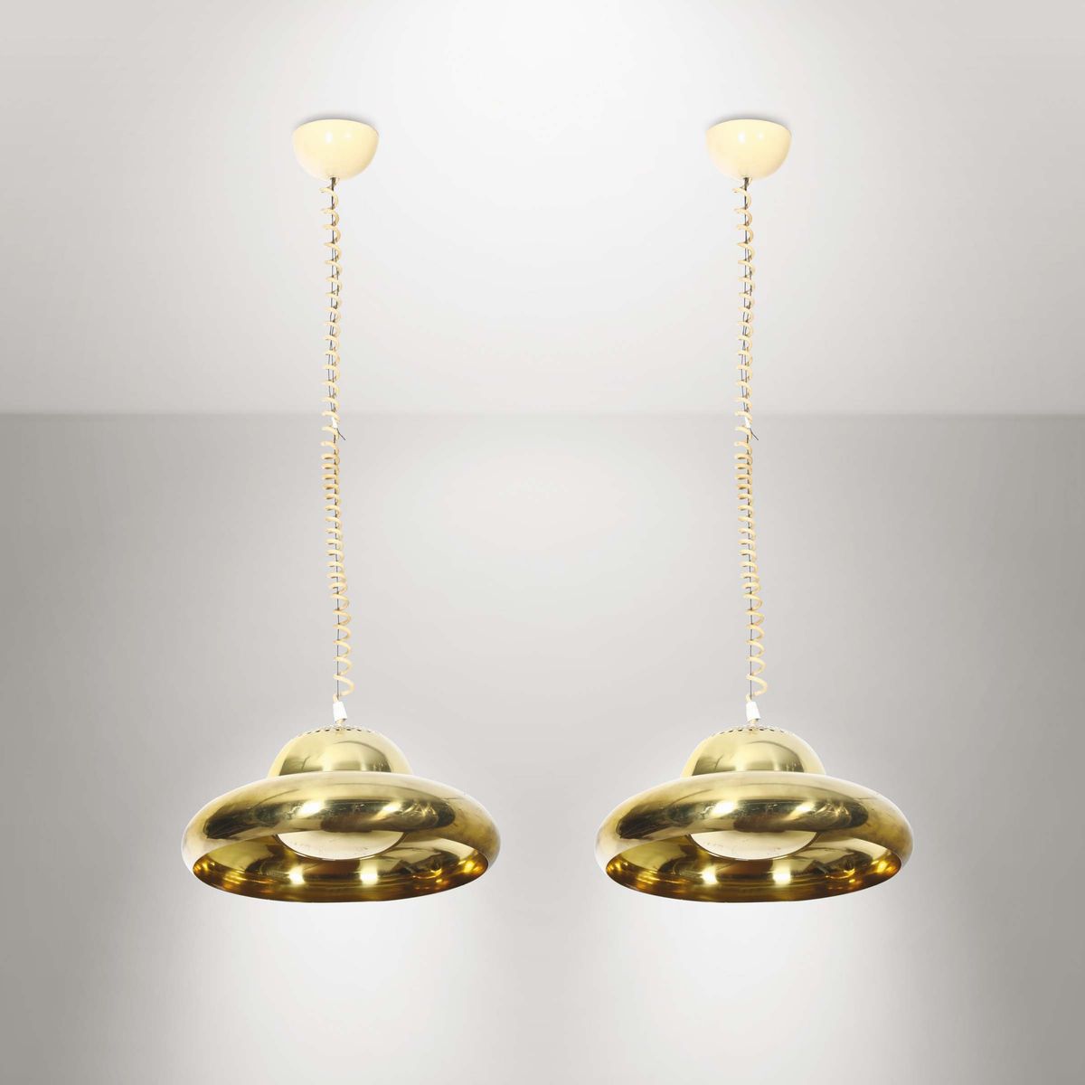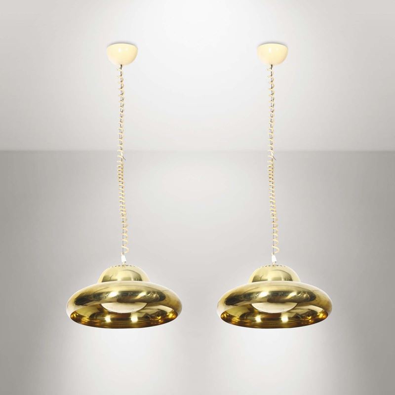 Coppia di lampade da sospensione Fior di Loto in ottone nichelato. Prod. Flos, Italia, 1962