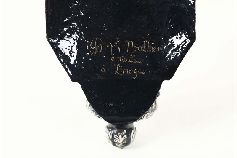 Acquasantiera in smalti di Limoges, XIX-XX secolo