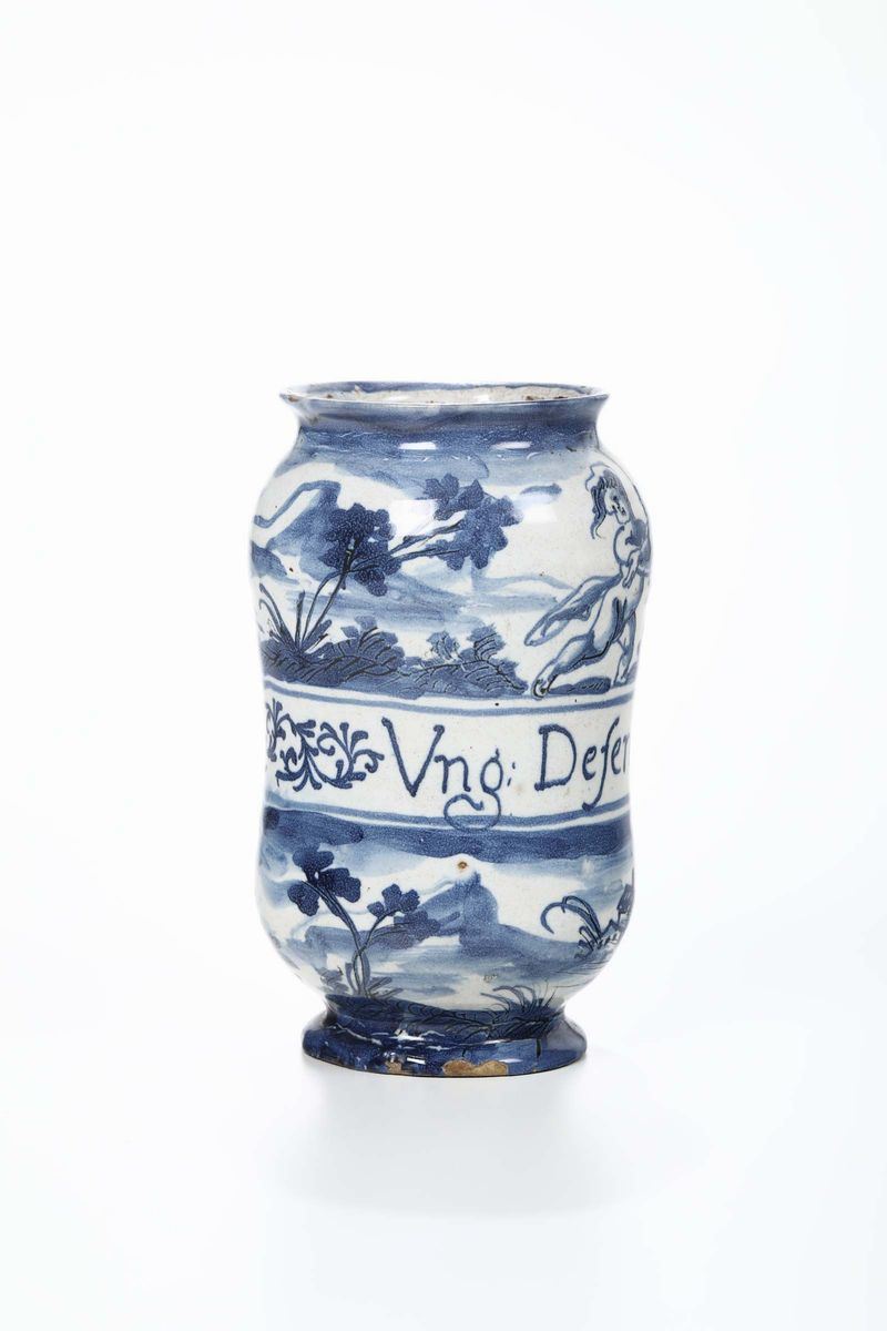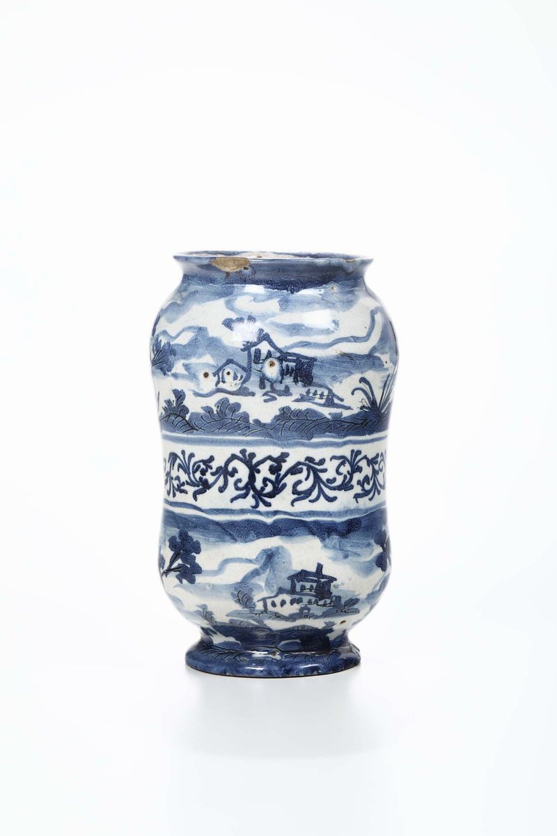Maiolica monocroma blu. Marca: asterisco. Altezza cm 21. Piccole sbeccature