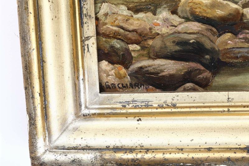 olio su cartoncino, cm 28x40, firmato in basso a sinistra