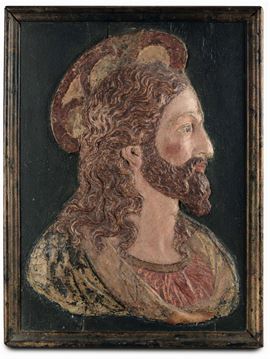 Bassorilievo ligneo raffigurante profilo di Cristo, XIX secolo