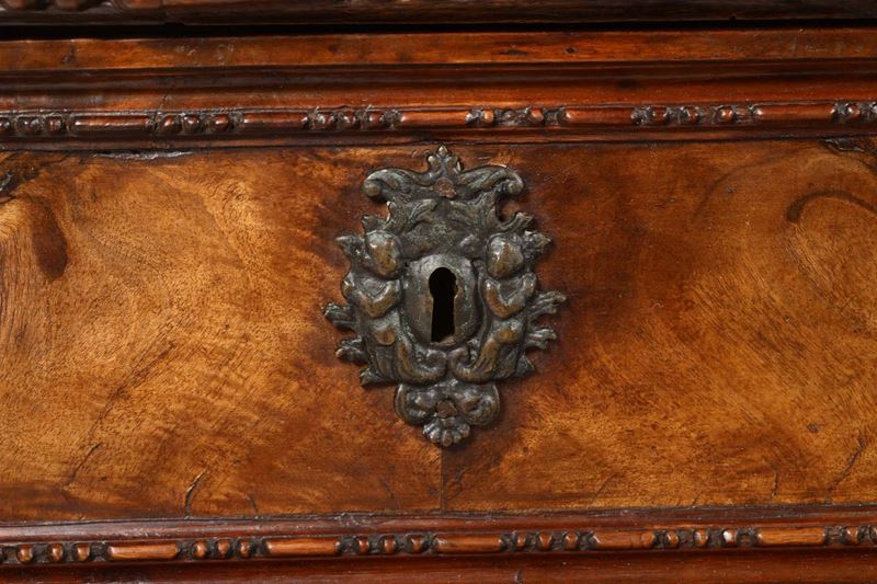 Cantarano in legno intagliato e lastronato, XVIII-XIX secolo