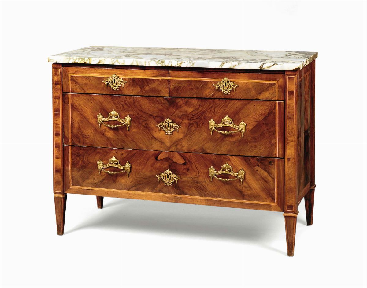 Cassettone Luigi XVI lastronato e filettato, Genova fine XVIII secolo