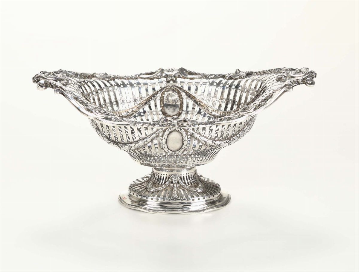 Cestino in argento fuso e traforato, Inghilterra 1885