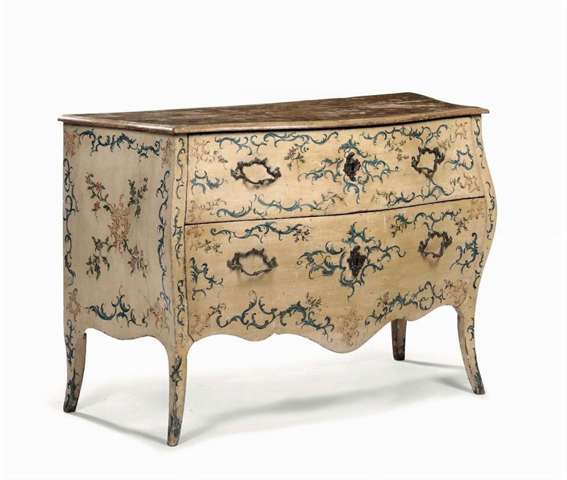 Comò in legno dipinto e laccato, Genova seconda metà del XVIII secolo
