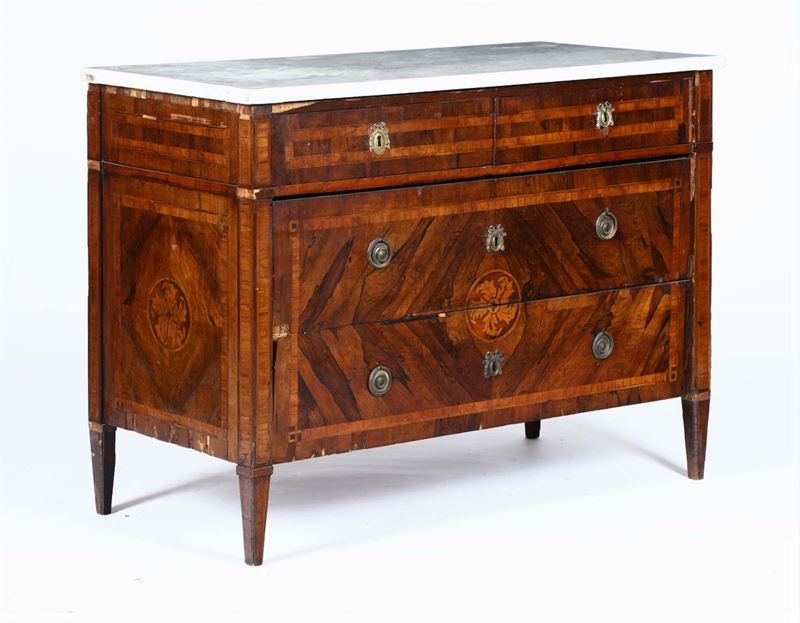 Comò lastronato ed intarsiato, Genova fine XVIII secolo