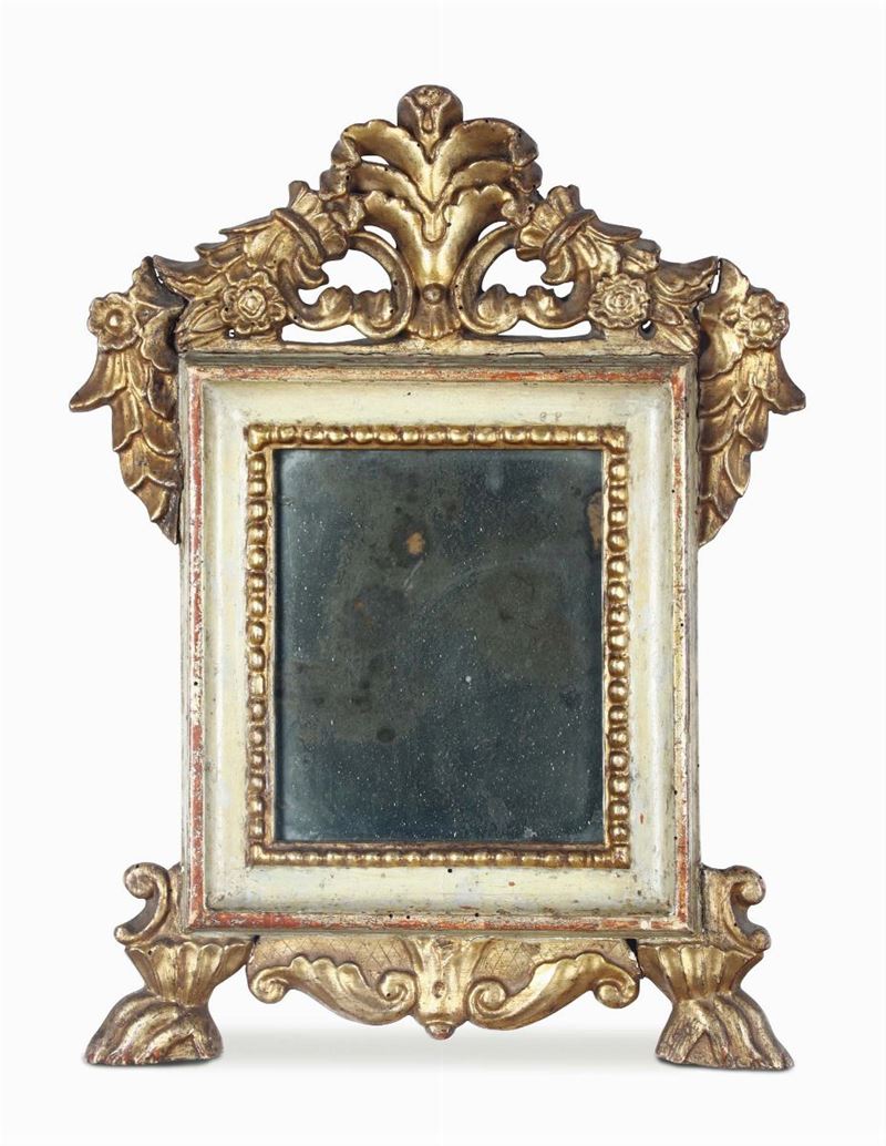 Coppia di cartagloria in legno intagliato, laccato e dorato, XVIII secolo