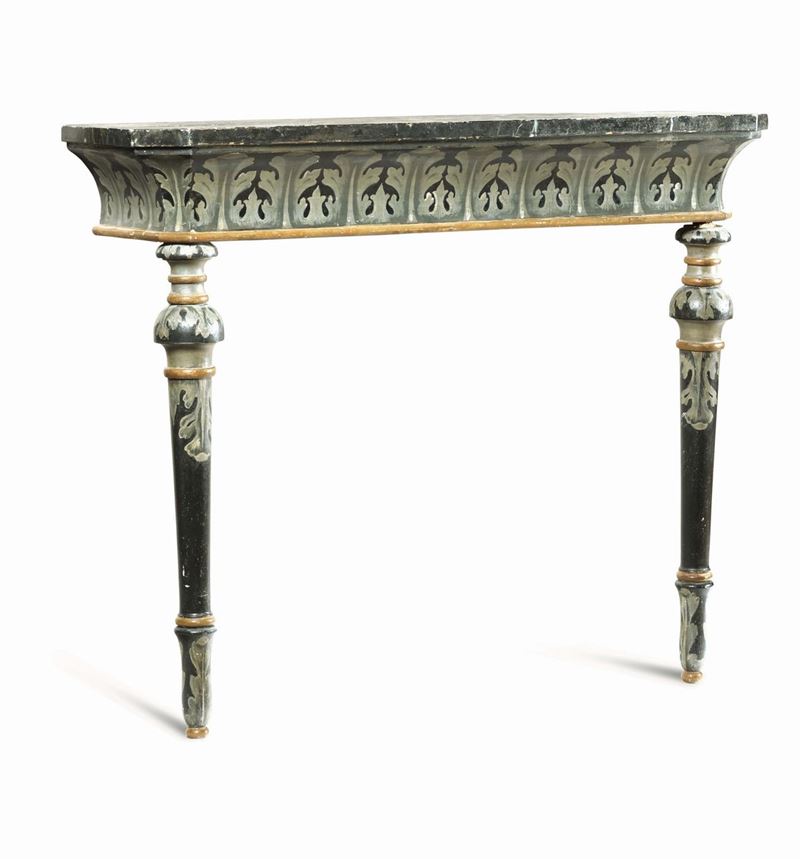 Coppia di consoles in legno dipinto con piano a finto marmo, XIX-XX secolo