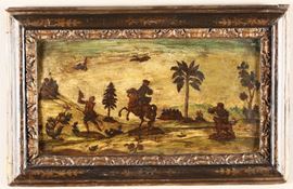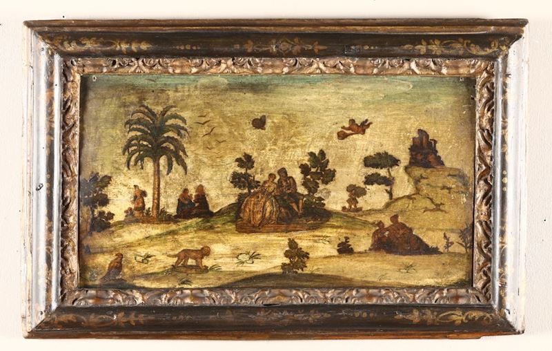 Coppia di pannelli lignei decorati ad arte povera, Venezia XVIII secolo
