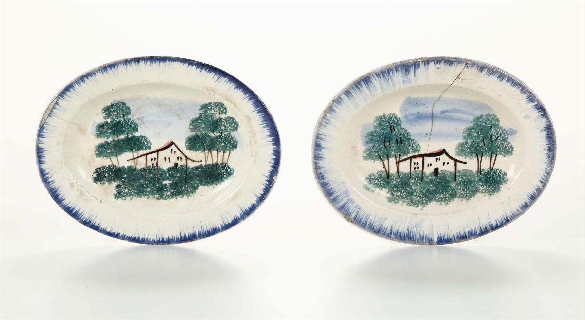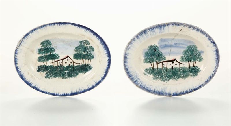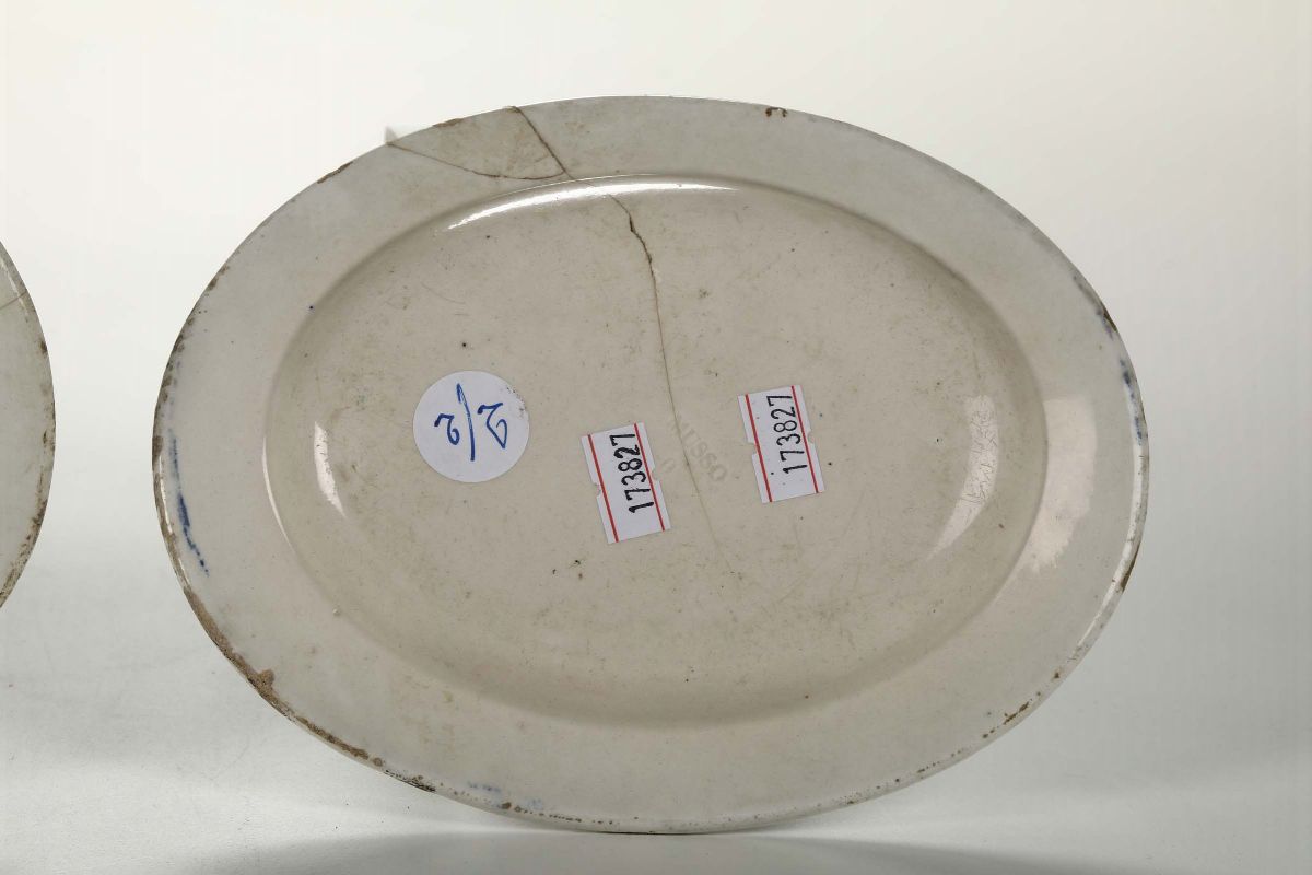 Coppia di piattino ovali in porcellana, Mondovì XIX secolo