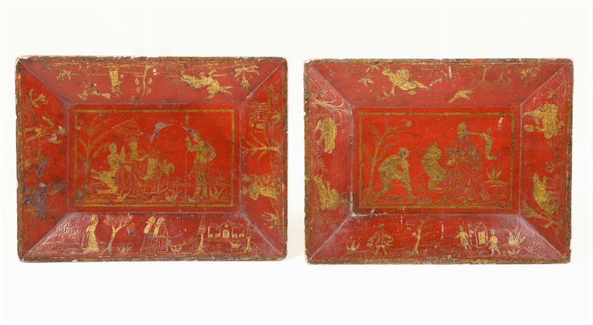 Coppia di vassoietti in lacca rossa ad arte povera, Venezia XVIII-XIX secolo
