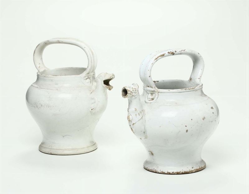 Coppia di versatoi in terraglia bianca, XIX secolo