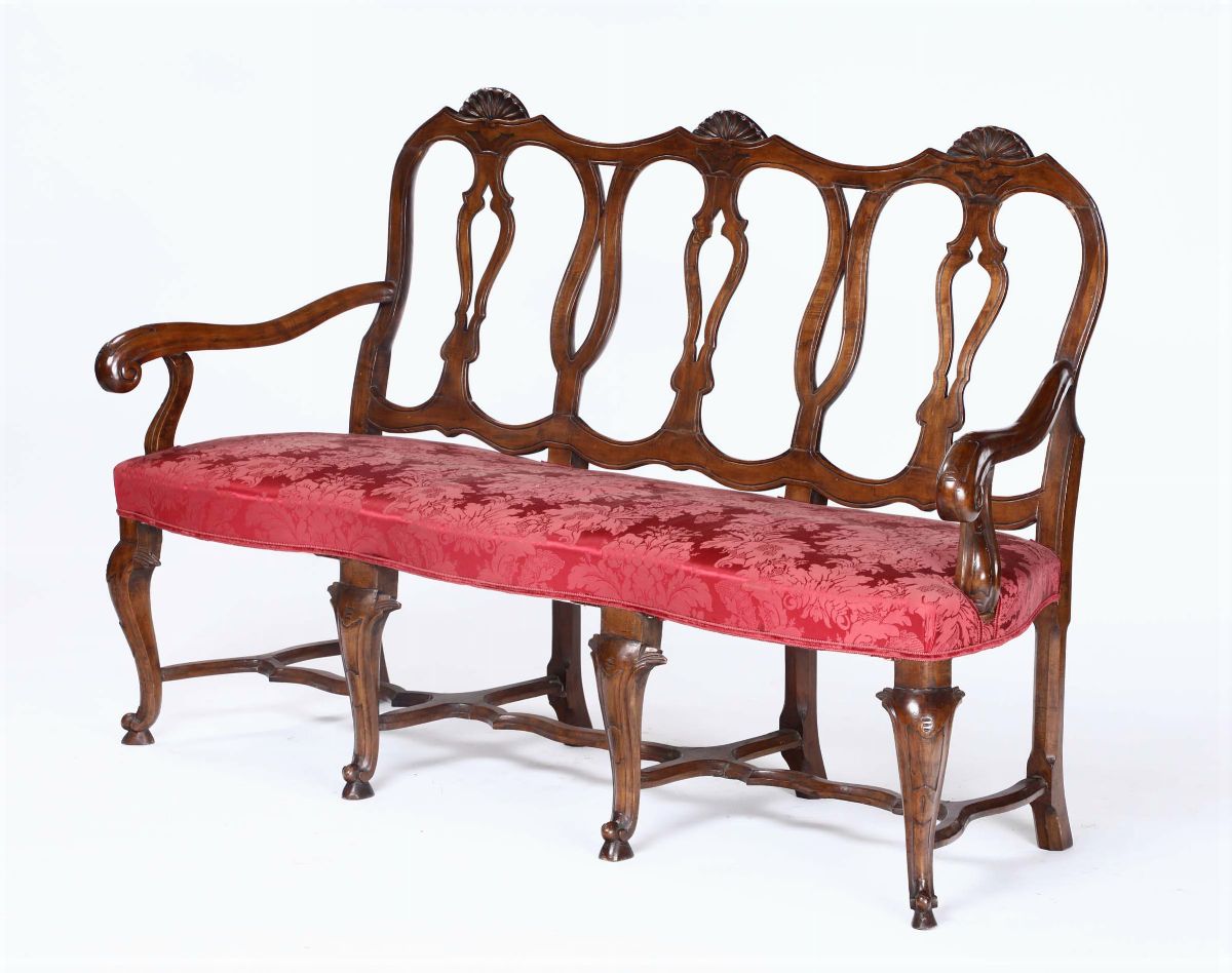 Divano a tre posti in noce, Veneto, XVIII secolo