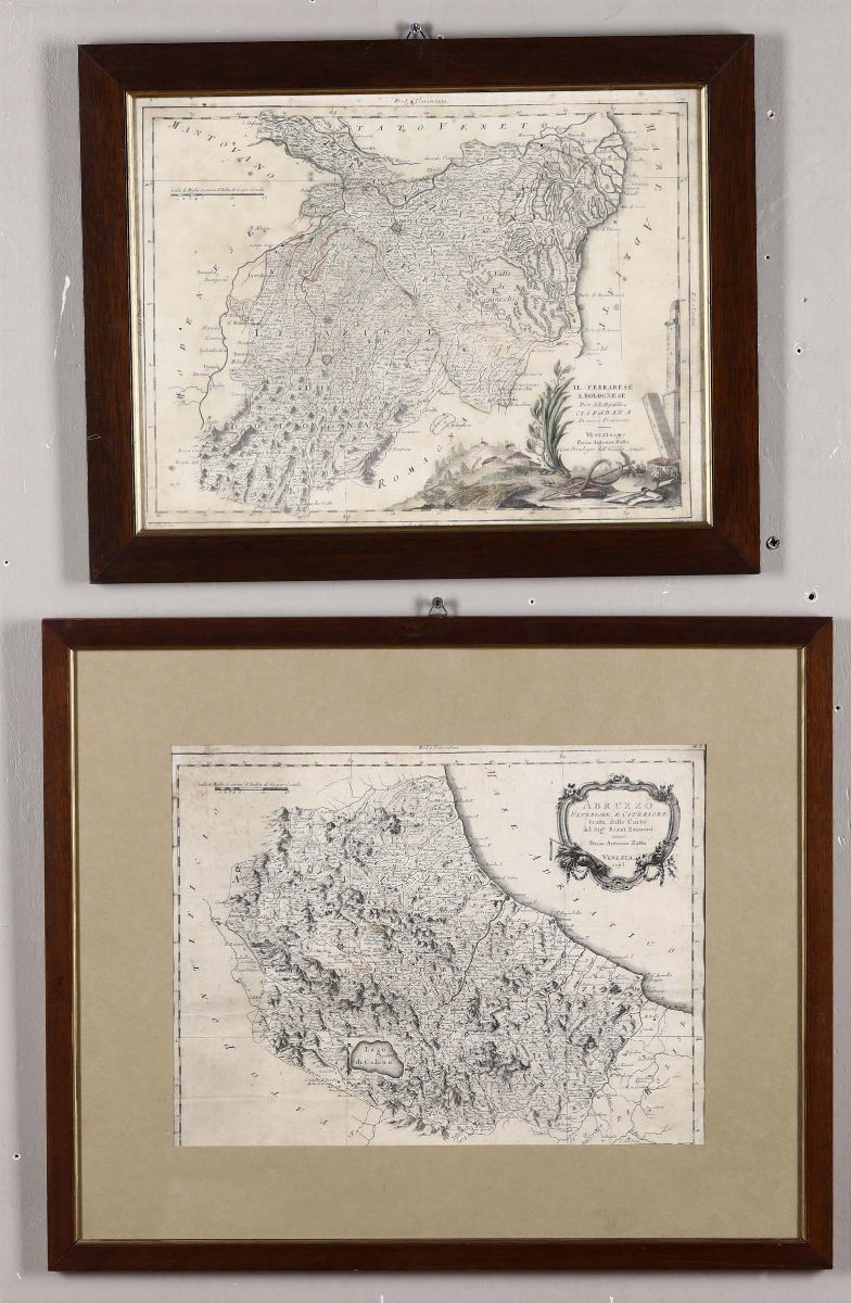 Due stampe raffiguranti Abruzzo ed Emilia Romagna, fine XVIII secolo