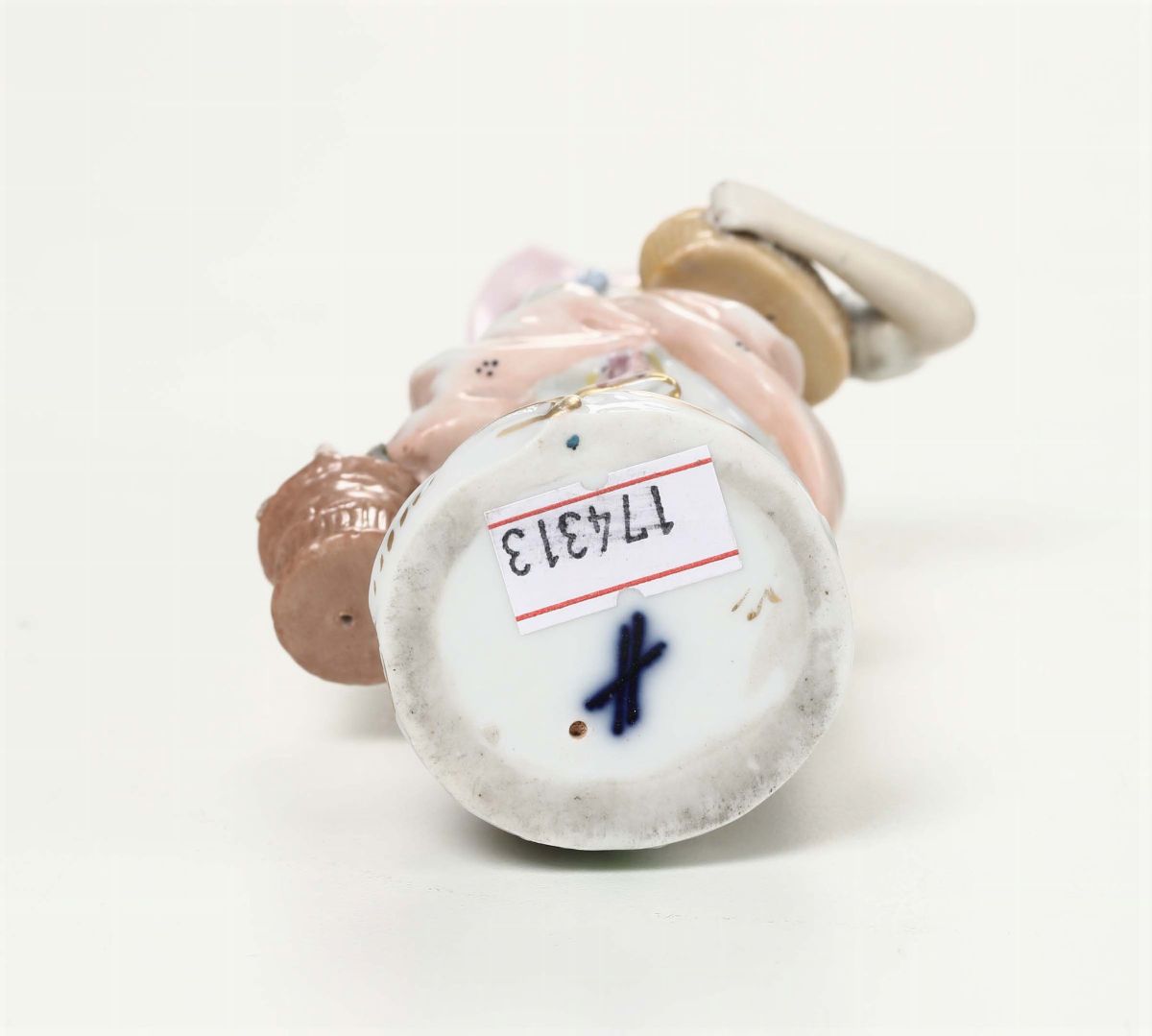 Porcellana policroma. Marca: travi incrociate in blu. Altezza cm 13,4. Braccio sinistro ricomposto in restauro