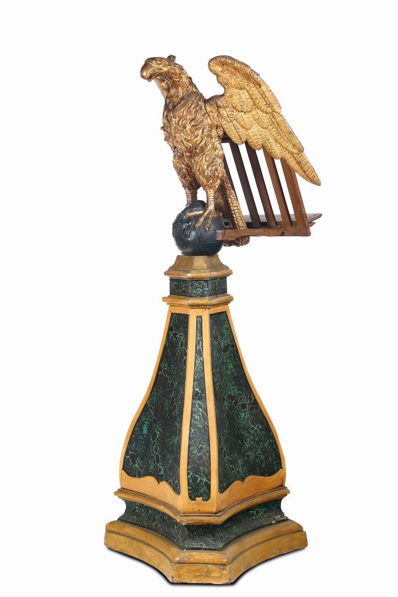 Grande aquila in legno intagliato e dorato, XVIII secolo