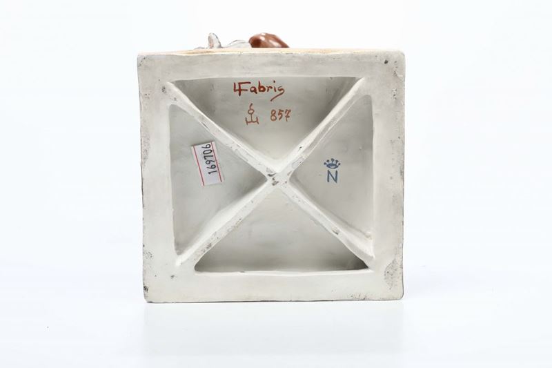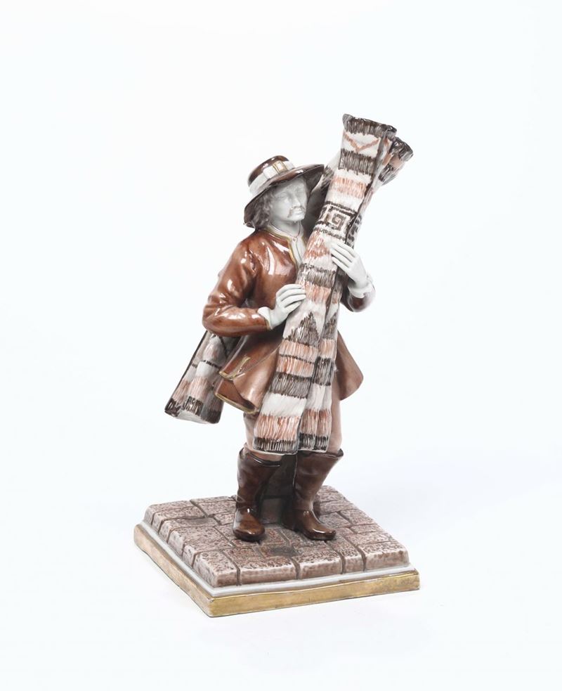 Grande figura in porcellana raffigurante venditore di tappeti, marcata N coronato, anni 30