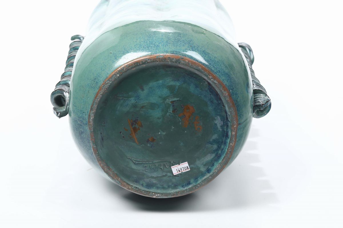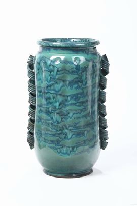 Grande vaso a cilindro in ceramica smaltata verde, marcato Batini, Firenze anni 30