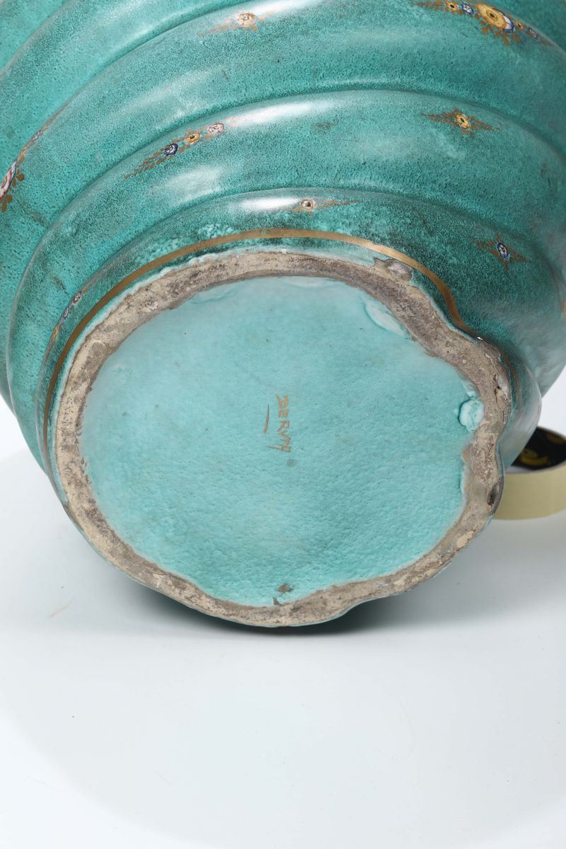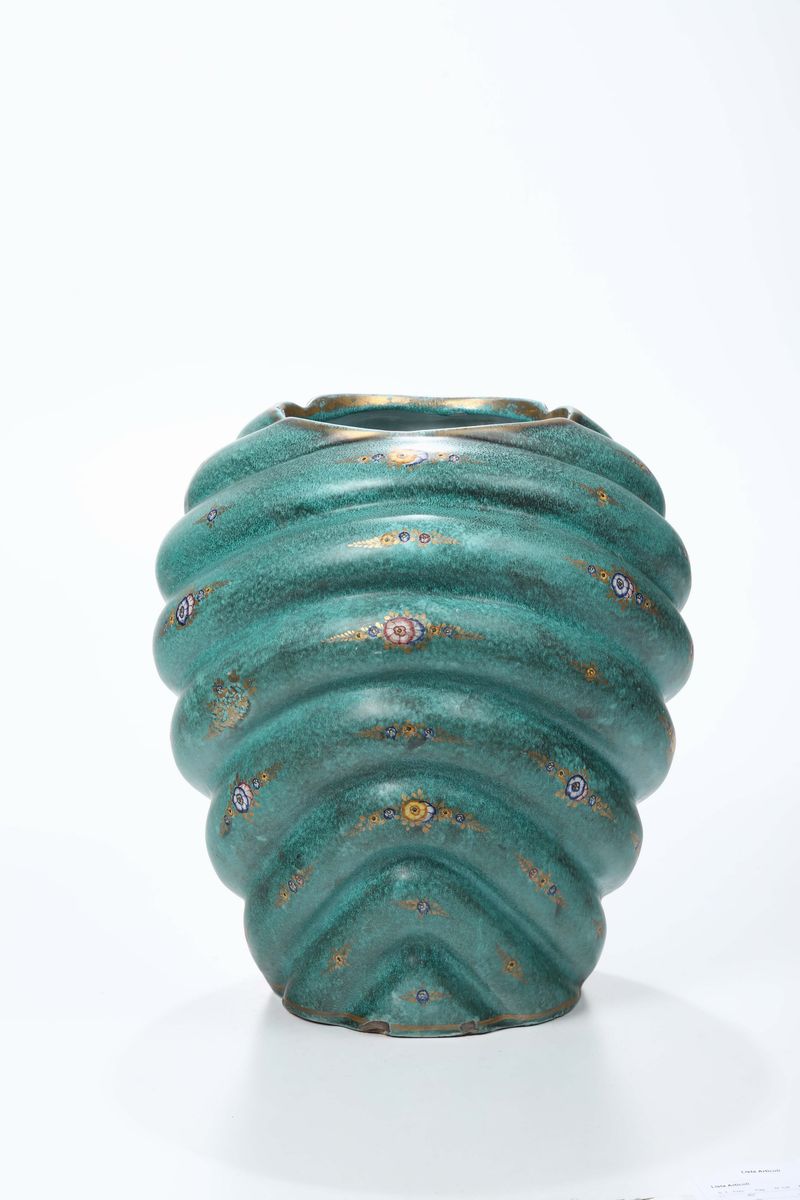 Grande vaso in ceramica di Deruta dipinto in verde, decoro a costole con motivi floreali, anni '30 del 900, marcato Deruta [..]