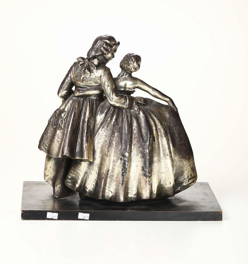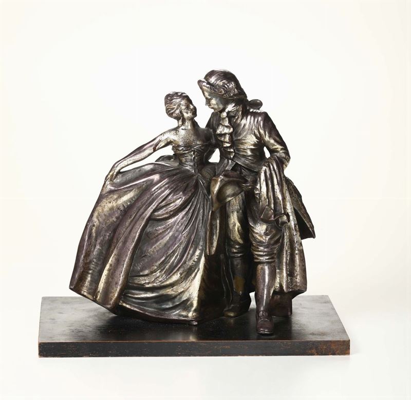 scultura in ceeramica raffigurante amanti al ballo, firma al retro, altezza cm 30
