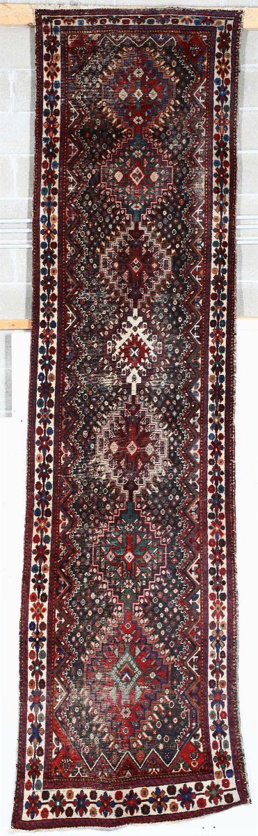 campo marrone con medaglioni scalari sovrapposti, bordura chiara, cm 374x110