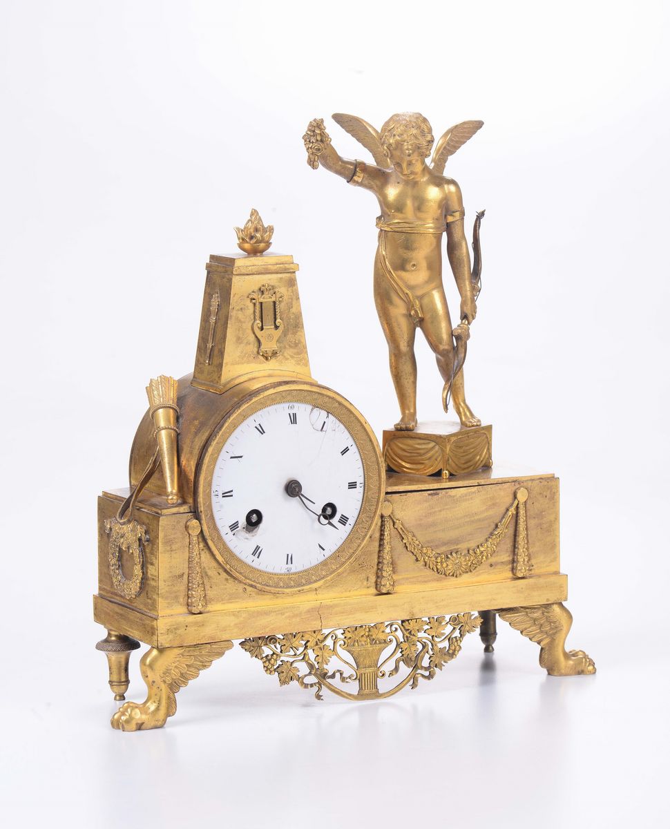 Pendola da tavolo in bronzo dorato con figura di putto, Francia XIX secolo