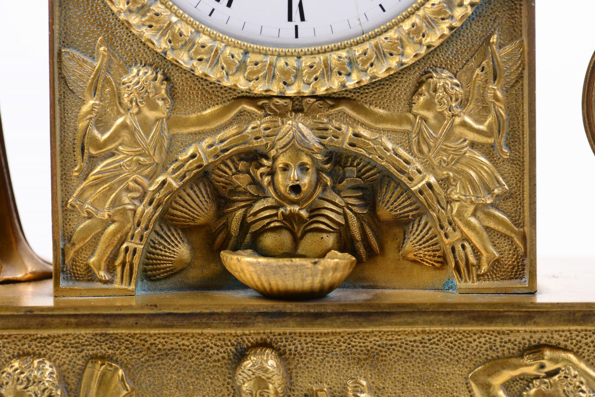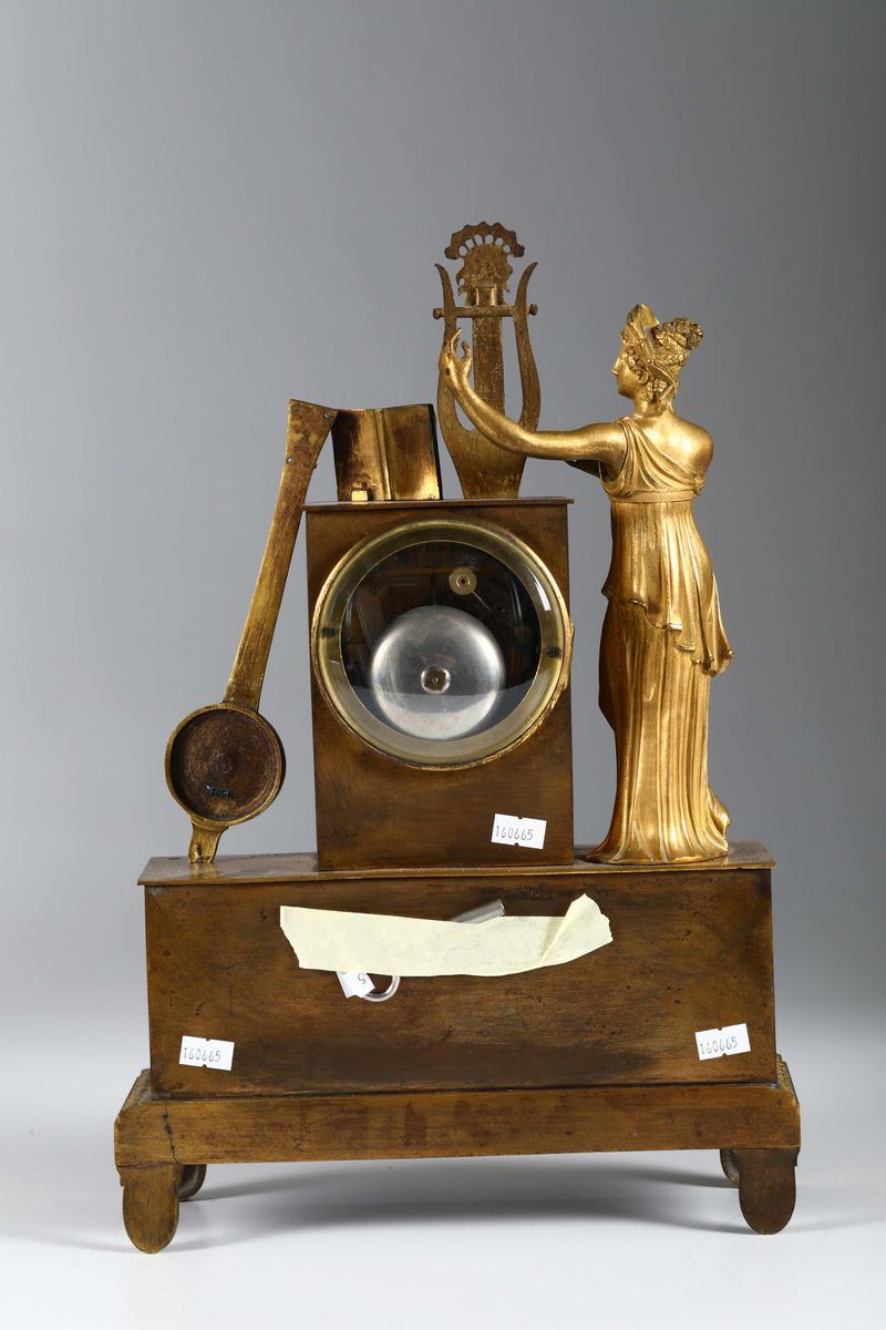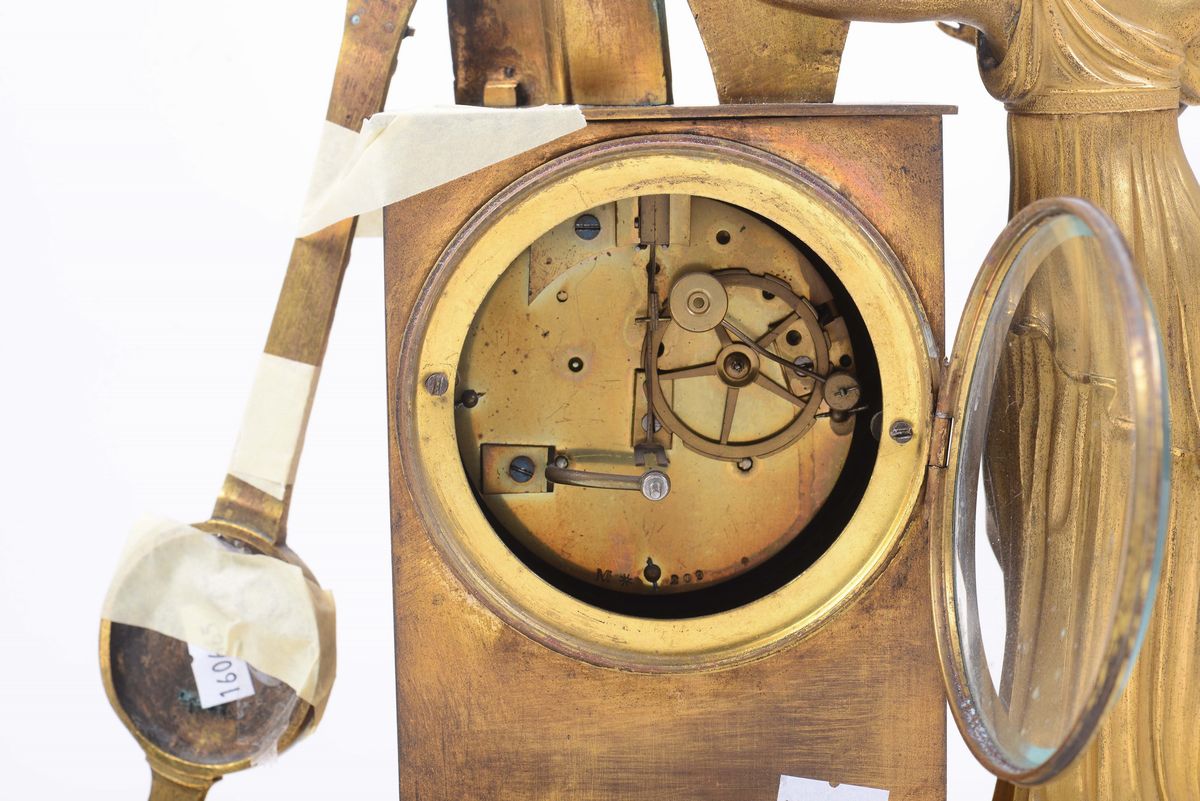 Pendola da tavolo in bronzo dorato con figura femminile, Grandvoinnet, Francia XIX secolo