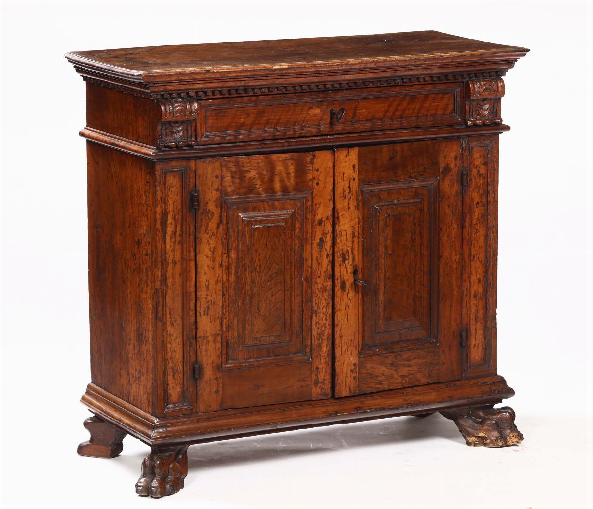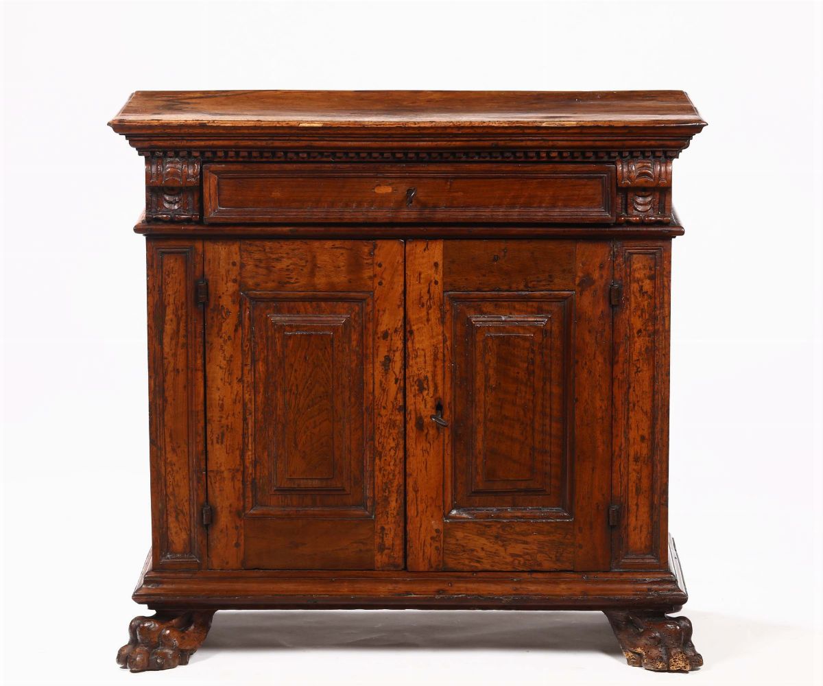Piccolo credenzino in noce due sportelli e un cassetto, XIX secolo