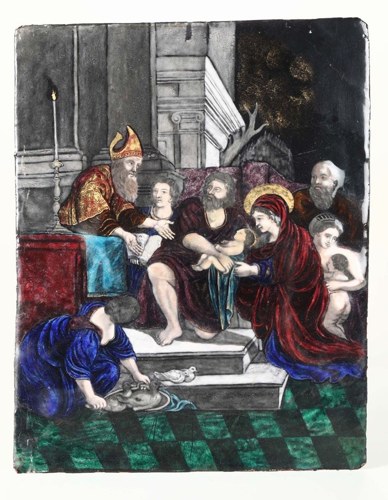 Placca in smalti di Limoges raffigurante presentazione al tempio, XIX-XX secolo