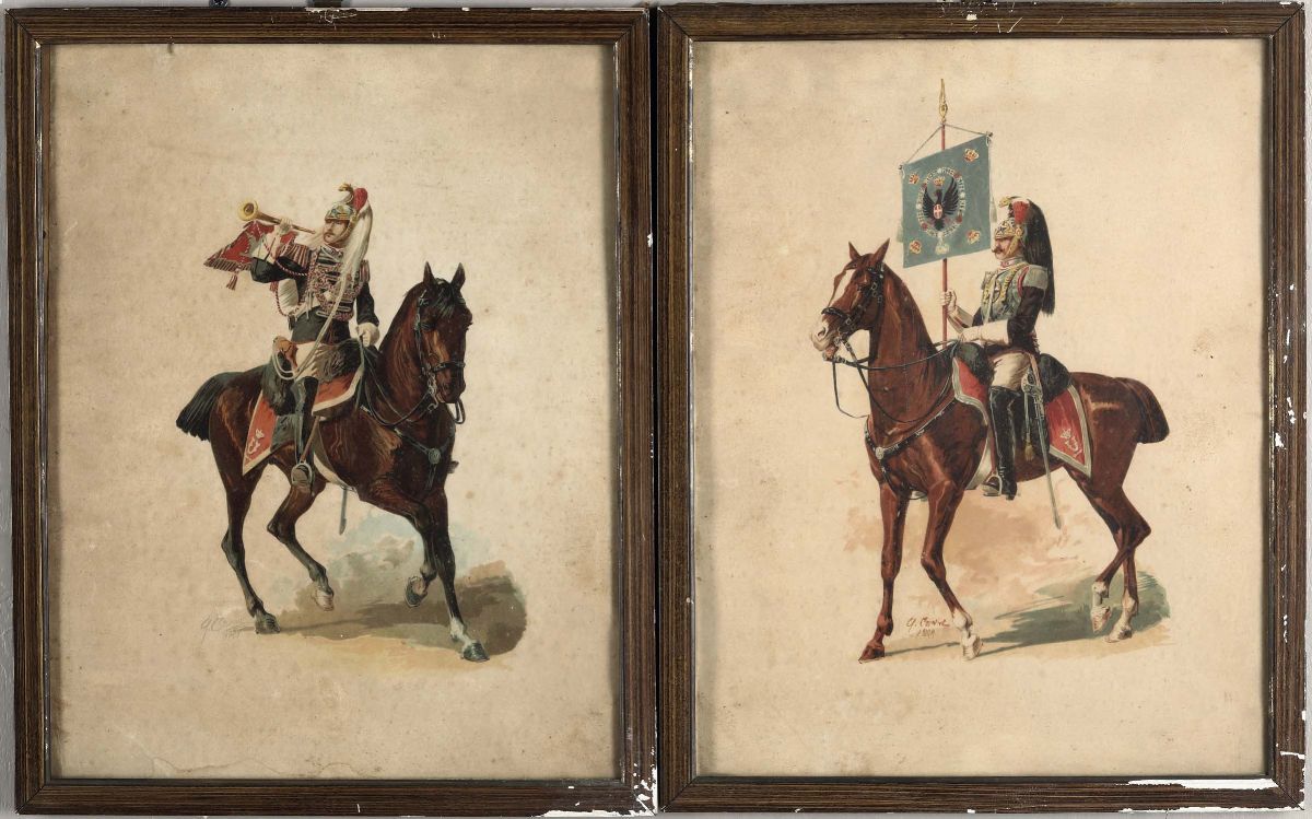 Quinto Cenni (1845 - 1917) Corazzieri in antica uniforme