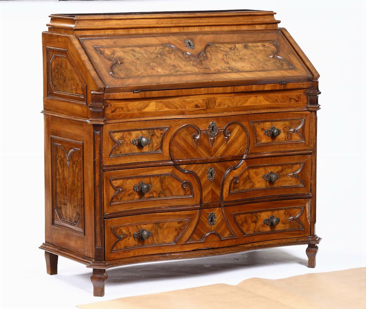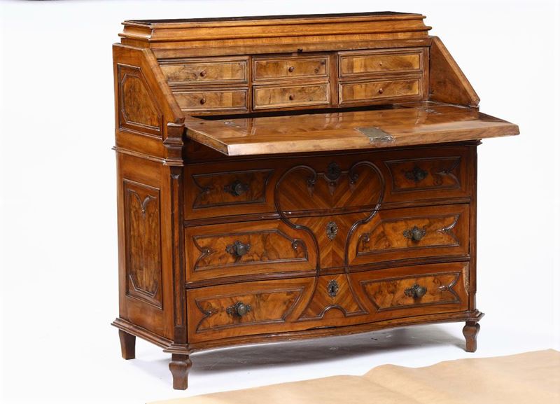 Ribalta a tre cassetti lastronata, XIX secolo
