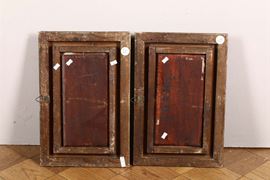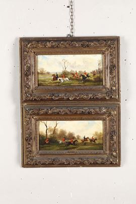 coppia di dipinti ad olio su tavola, cm 15x30, firmati in basso a destra