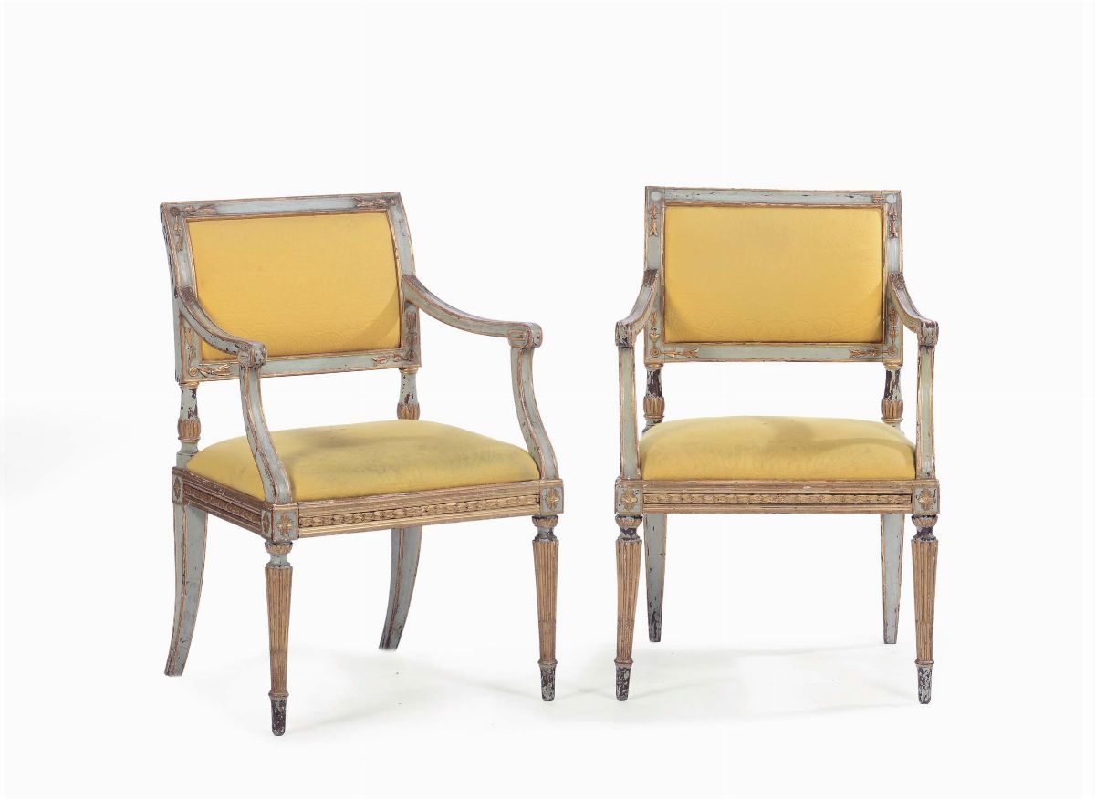 Salotto Luigi XVI in legno intagliato e laccato, XVIII secolo
