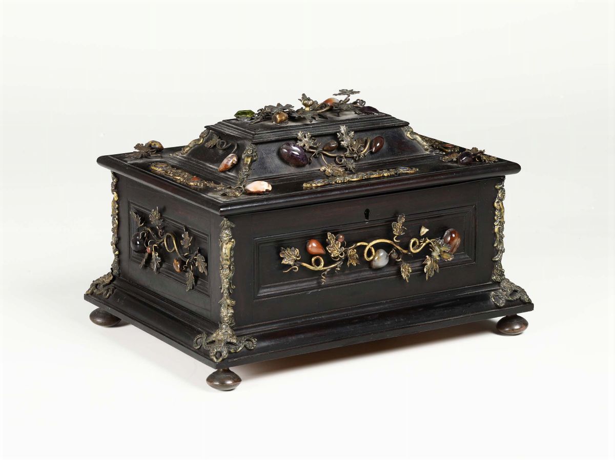 Scatola in ebano viola e pietre dure, XVIII-XIX secolo
