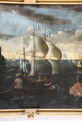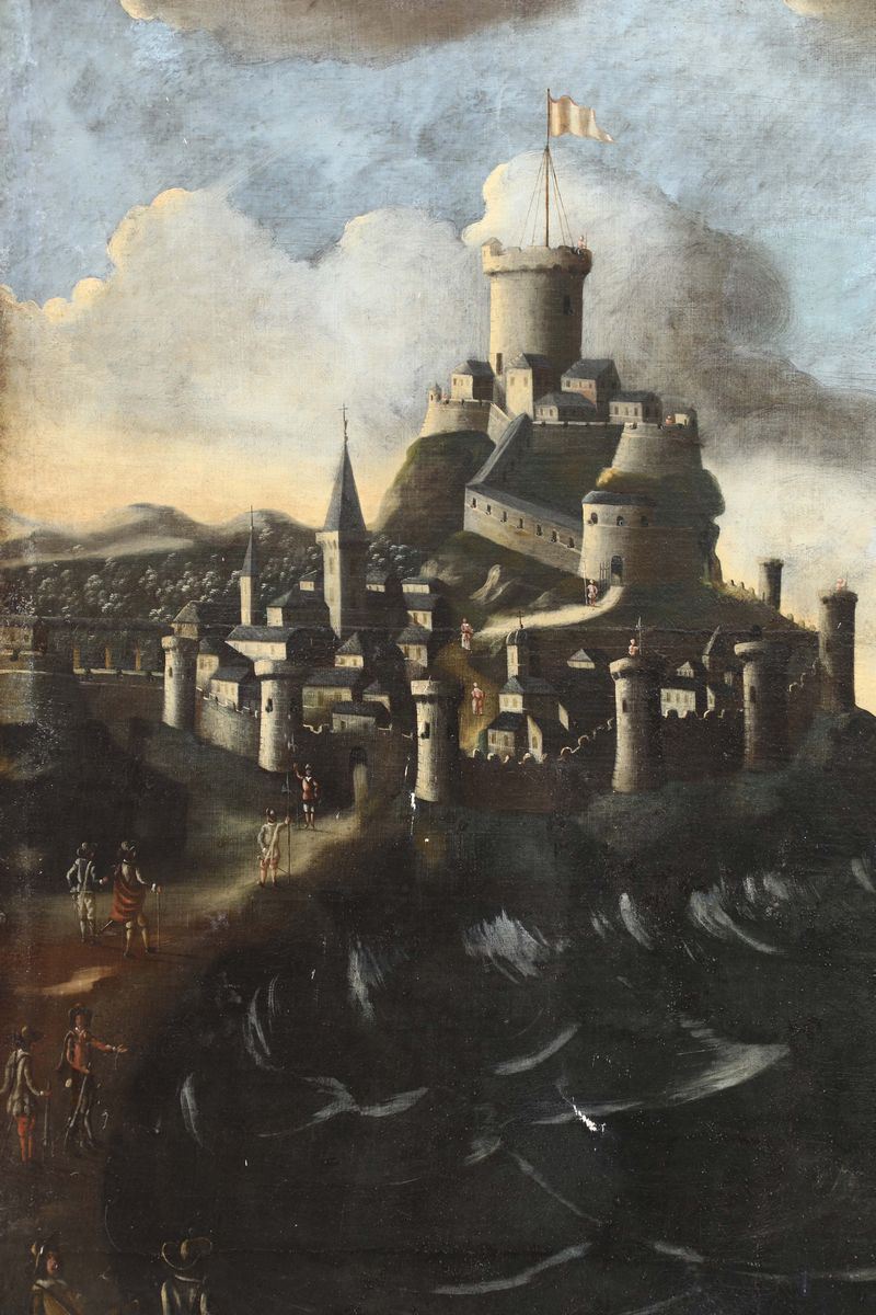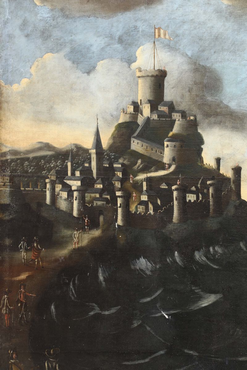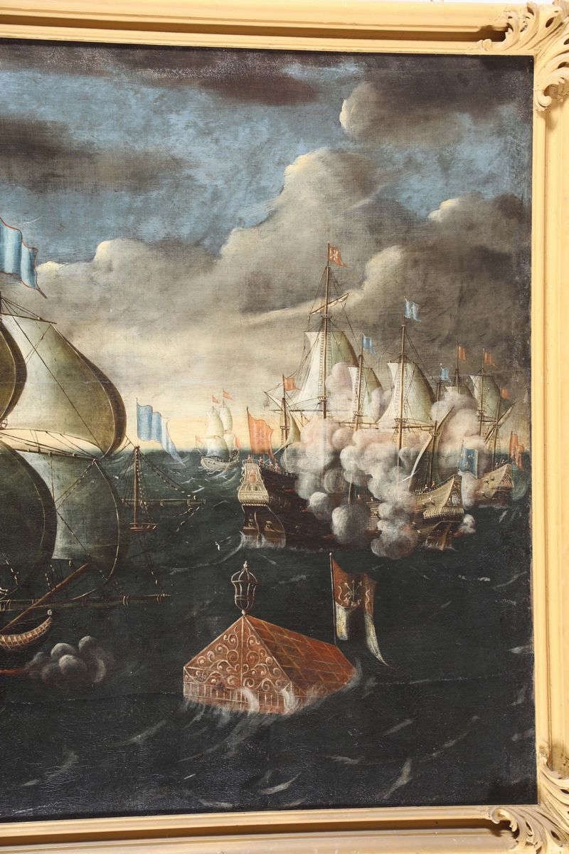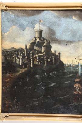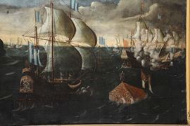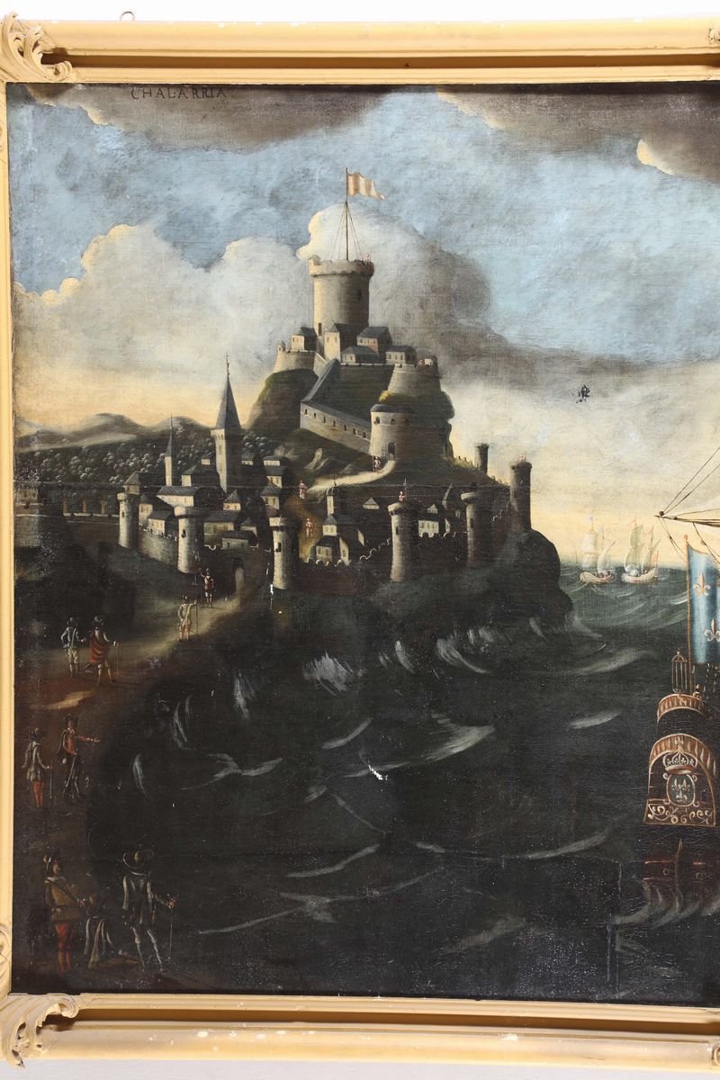 Scuola del XVIII secolo Paesaggio con battaglia navale