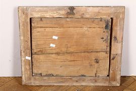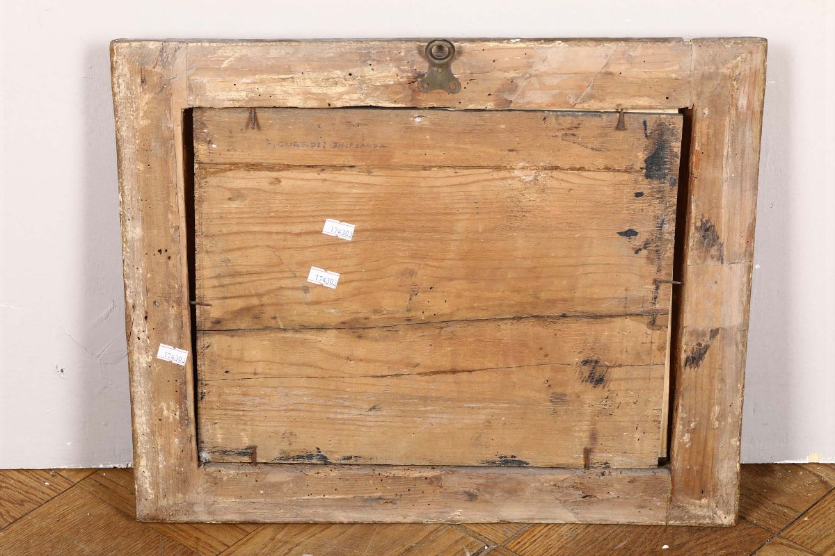 Specchiera in legno dorato con decorazione policroma di ghirlanda floreale e putti, XVIII-XIX secolo