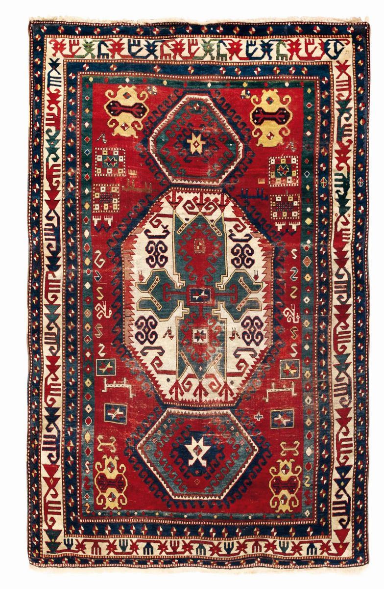 Tappeto caucasico Kazak Lori Pambak, fine XIX secolo