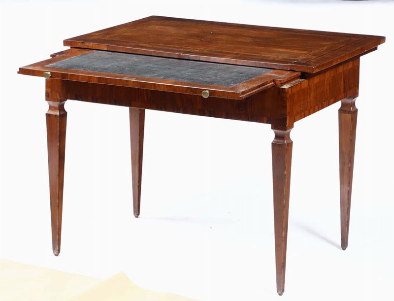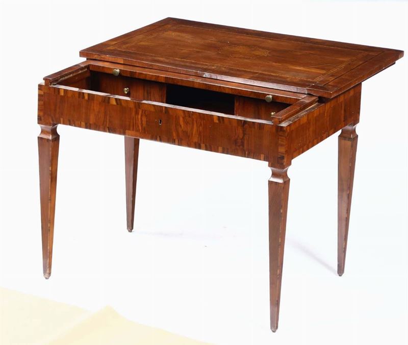Tavolo scrittoio Luigi XVI lastronato ed intarsiato, Toscana fine XVIII secolo
