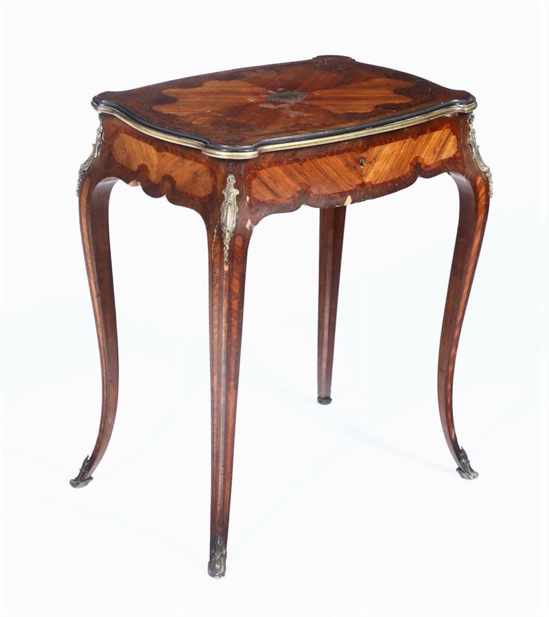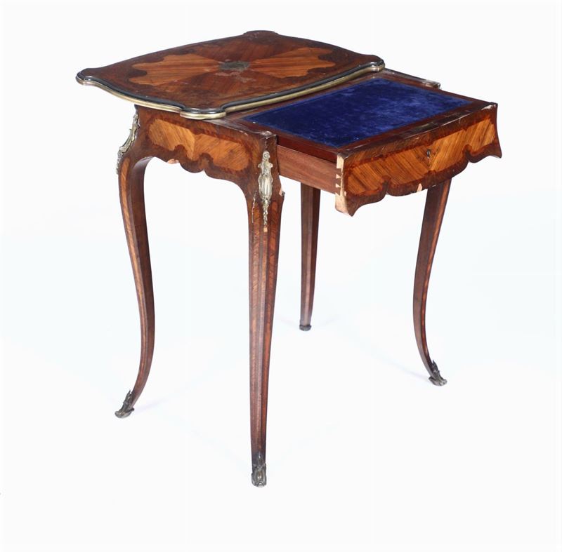 Tavolo-scrittoio Napoleone III in legno lastronato ed intarsiato, XIX secolo