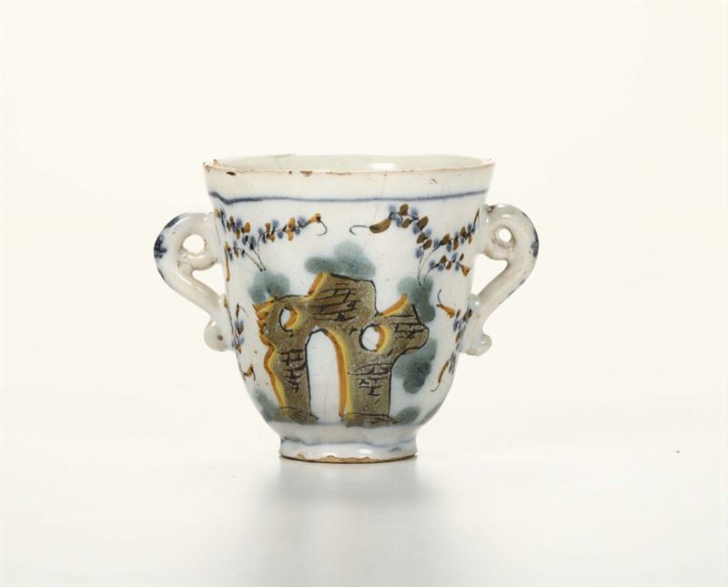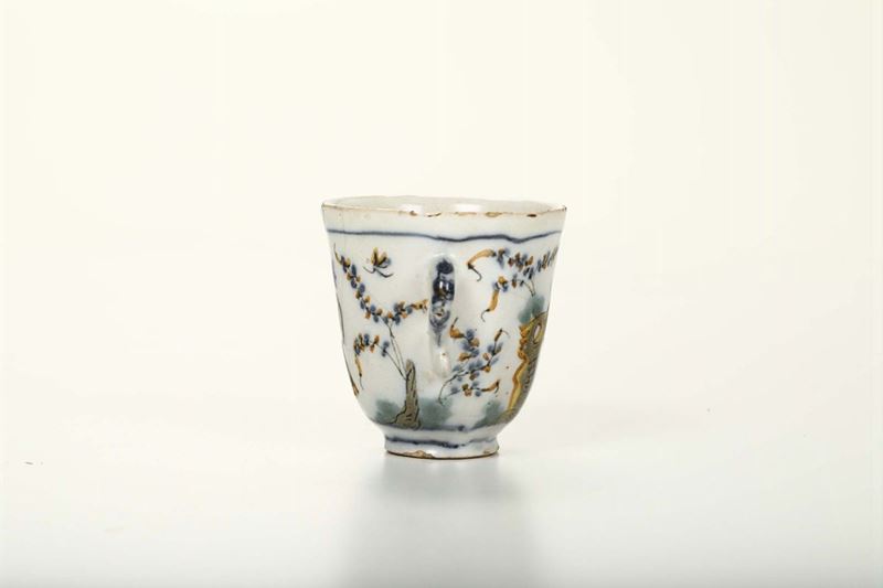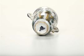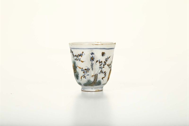 Maiolica policroma. Marca: fortezza. Altezza cm 7,5. Minime felature e sbeccature