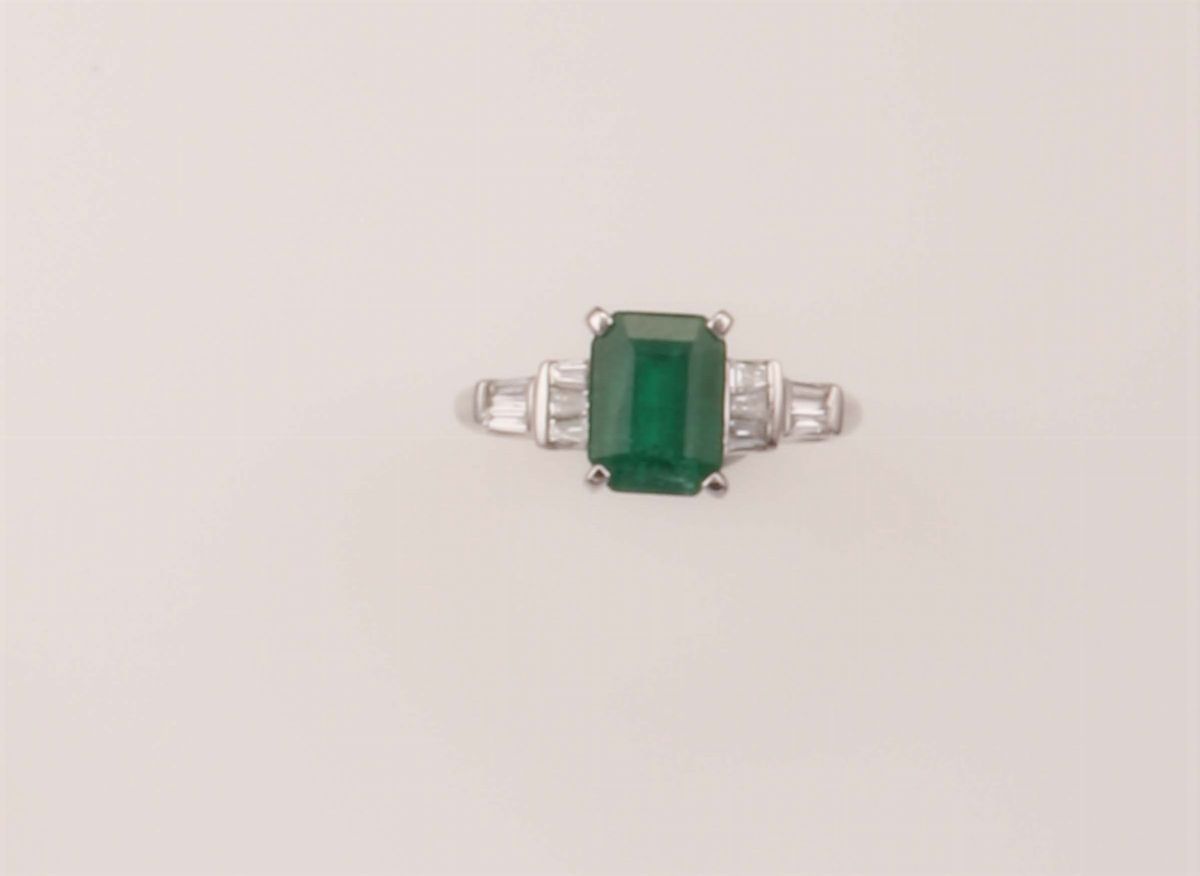 Anello con smeraldo Brasile di ct 2,20 circa e diamanti taglio tepper