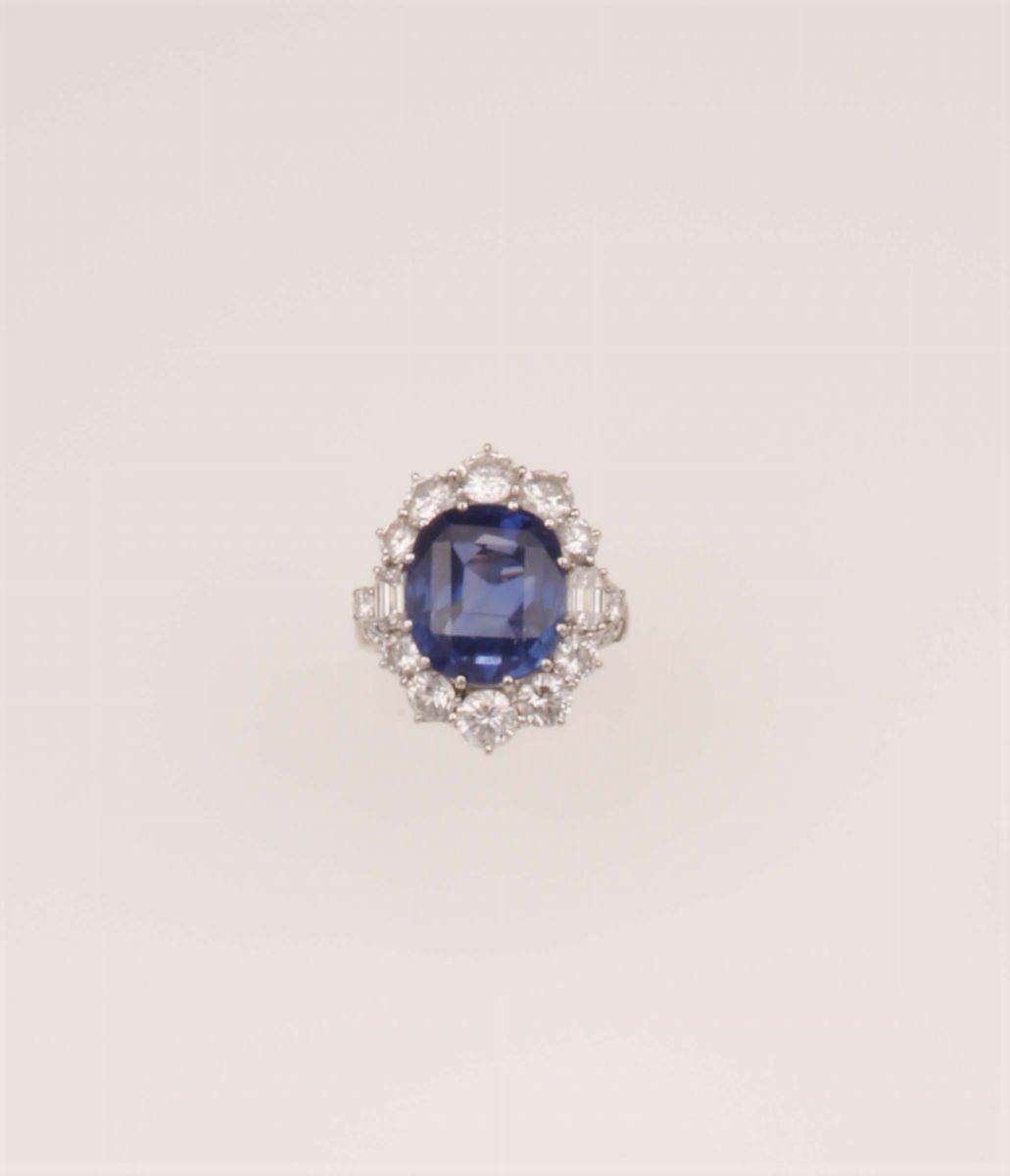 Anello con zaffiro Sri Lanka di ct 10,80 circa e diamanti a contorno
