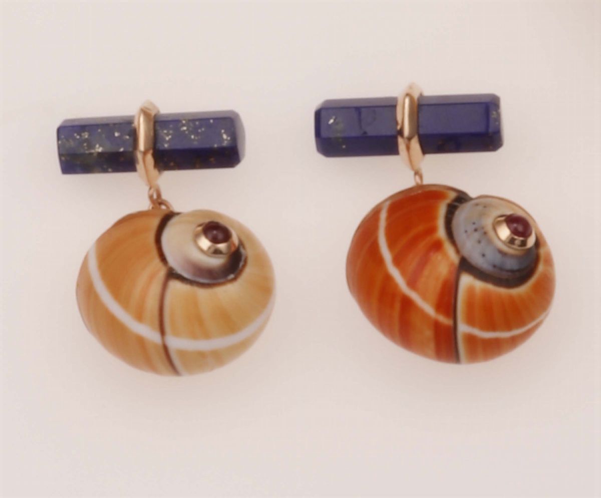 Bottoni da polso Conchiglia con lapislazzuli, conchiglia e rubini